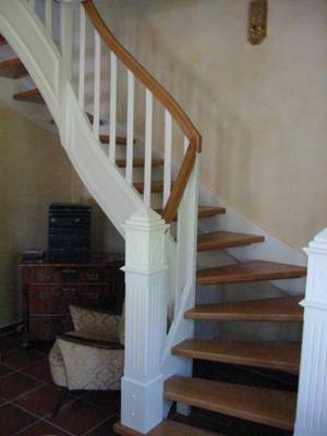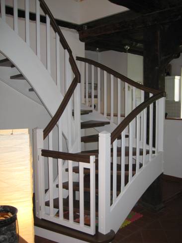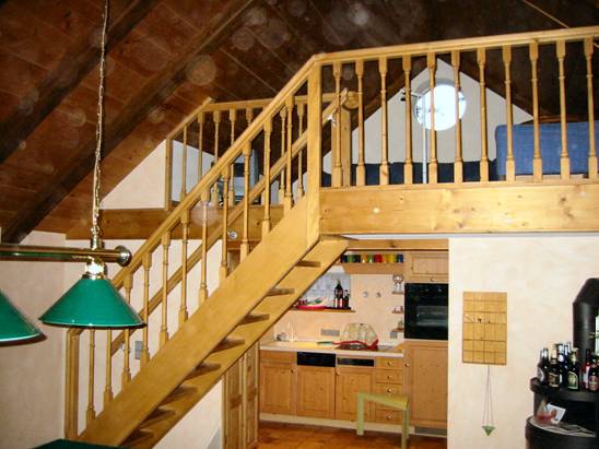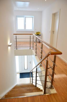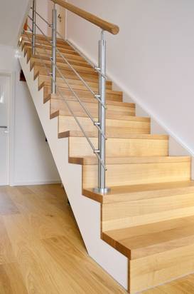 Wählen Sie aus zwischen einer gestemmten oder aufgesattelten Treppe und nennen Sie uns auch gerne für die Gestaltung von Geländer und Handläufen Ihre persönlichen Vorstellungen. Auf Wunsch fertigen und montieren wir außerdem Brüstungsgeländer und Verkleidungen für Deckenkanten sowie eigenständige Geländer aus Holz für geflieste Treppen.